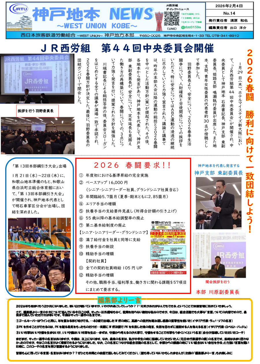 JR西労組 第44回中央委員会開催